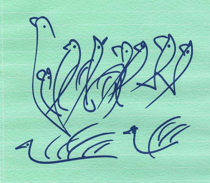 Sálin, líkt og friðardúfa, þráir guðdómleikann. Flug þeirra sent þyrstir í frið og þrá Guð verður áþreifanlegt, með (illum sínum háleitu andlegu eiginleikum, af þessu hreina og sjálfsprottna handhragði, afþessum sólbjörtn og fögru myndum sem Sri Chinmoy bregður upp....Við skulum sameinast Sri Chinmoy í þessu mikla flugi!